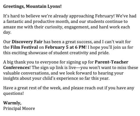 - Feb. 4th, 6th, 12th…Parent Teacher Conferences
