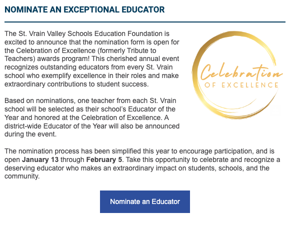 As we approach our 2024 graduation celebration, I want to take a moment to recognize the unwavering drive, strength of character, and rigorous academic preparation that our approximately 2,200 graduates have demonstrated throughout their time in St. Vrain.